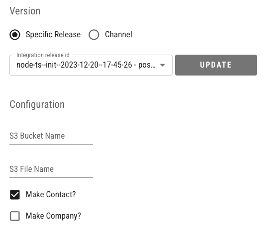 These options would be displayed on the connections settings page inside the Integration Hub like this:
