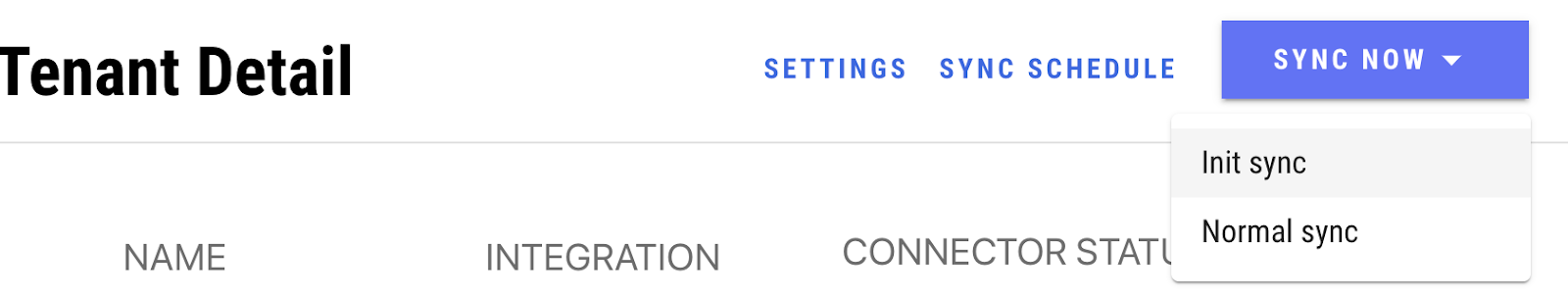 * An init sync can also be triggered manually int the Integration Hub when viewing a tenant,  clicking Sync Now, and selecting Init sync in the top right.